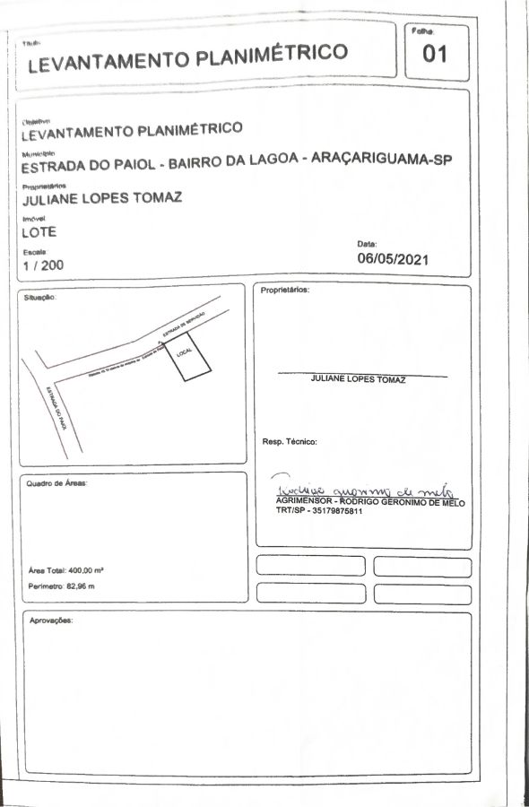 • Área Total: 400 m² (R$ 187/m²)
